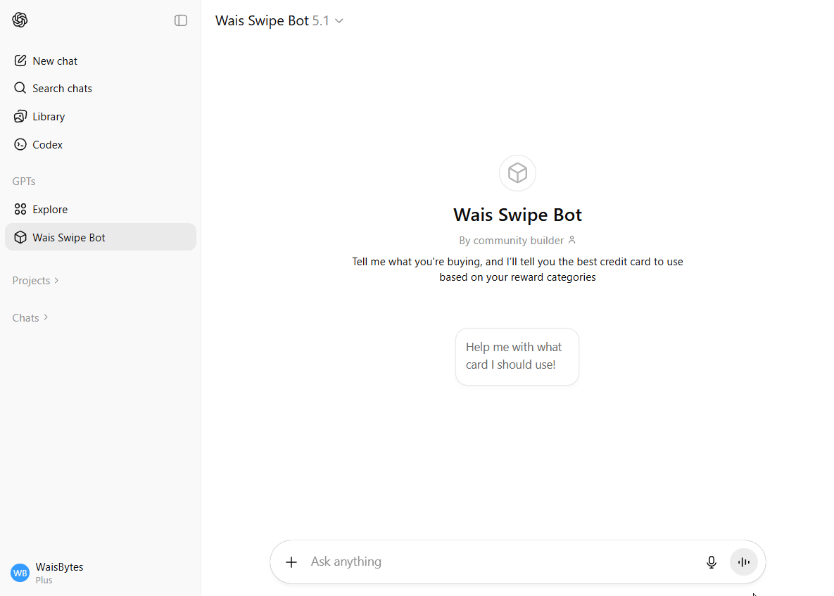 Wais Swipe: Your Custom GPT for Choosing the Best Credit Card Every Time